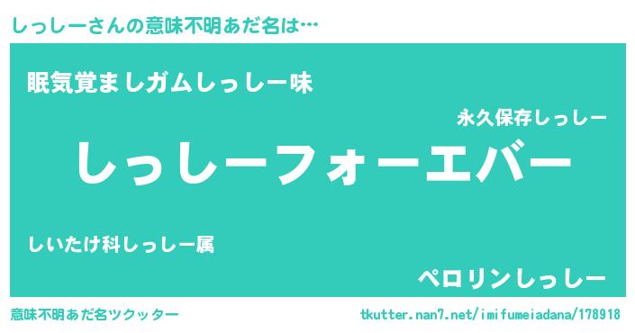 | ヒーロー風カッコイイあだ名 | 『ウルトラしっしーマン』『ネオシッシー』 |