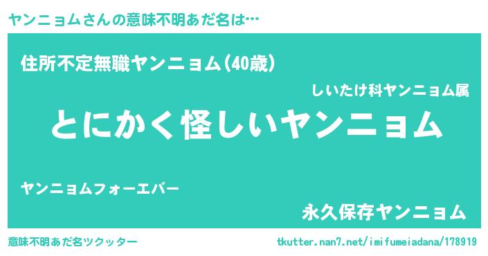 | 男性向けラノベタイトル風あだ名 | 『ヤンニョムの嫁は女の子じゃないと思った?』 |