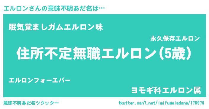 | ヘコむあだ名 | 『エルロン(小並感)』『酢こんぶ』 |