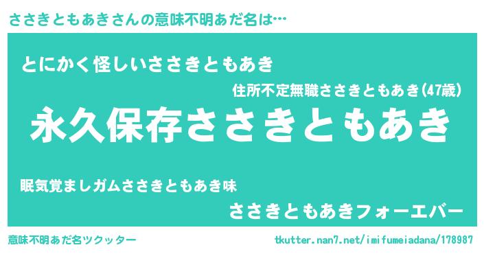 | ヘコむあだ名 | 『ささきともあき(笑)』『ささっ子』 |