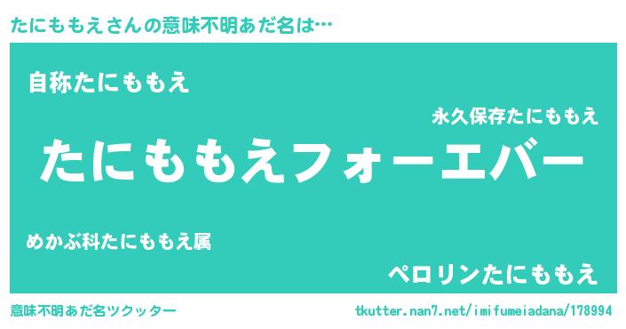 | ファンタジー風あだ名 | 『エターナルタニモモエー』『ゼタニトゥ』 |