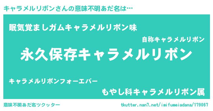 | 胡散臭い通販商品みたいなあだ名 | 『前代未聞の水素水…その名も「キャラメルリボン」』 |
