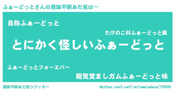 | 男性向けラノベタイトル風あだ名 | 『ふぁーどっとの嫁は女の子じゃないと思った?』 |