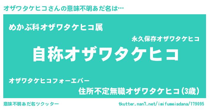 | ヘコむあだ名 | 『オザワタケヒコ(震え声)』『酢こんぶ』 |