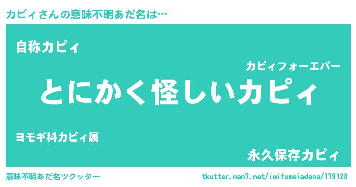| 女子向けラノベタイトル風あだ名 | 『カピィ様がみてる』『カピィの婚約者』 |