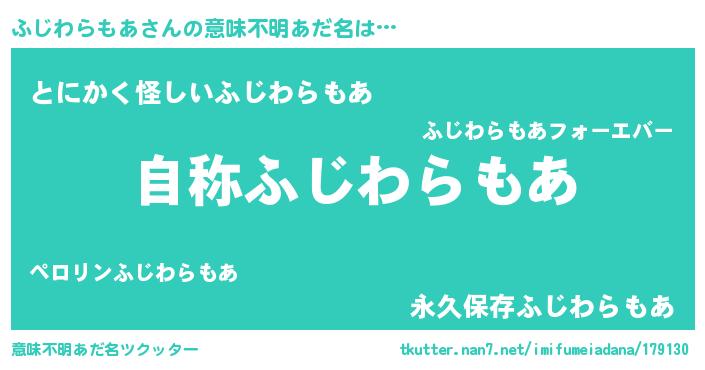 | 男性向けラノベタイトル風あだ名 | 『Re:ふじわらもあから始める異世界生活』 |