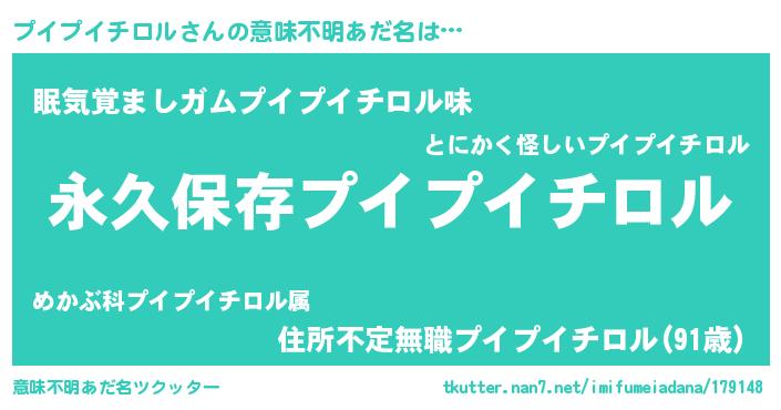 | ヘコむあだ名 | 『プイプイチロル(苦笑)』『プイお』 |