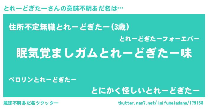 | ポケモン風あだ名 | 『トレゴンZ』『トックウザ』 |