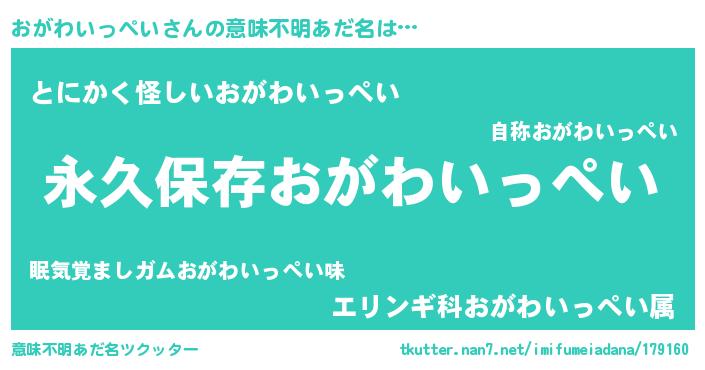| 欧米人風あだ名 | 『おがわいっぺい・ステッグマイヤー』 |