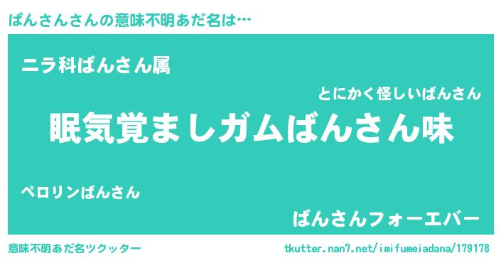 | ヘコむあだ名 | 『酢こんぶ』『ばんっぺ』 |
