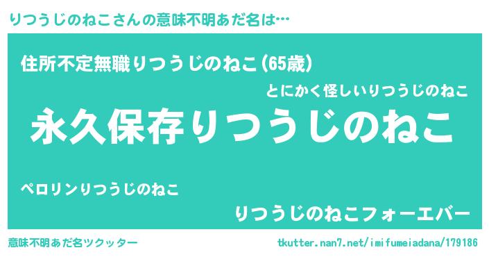 | 胡散臭い通販商品みたいなあだ名 | 『来世でも幸せになれる水素水…その名も「りつうじのねこ」』 |