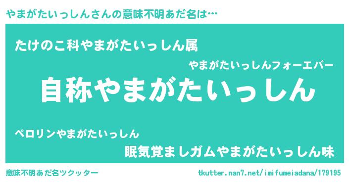 | 男性向けラノベタイトル風あだ名 | 『Re:やまがたいっしんから始める異世界生活』 |