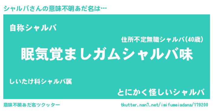 | ヒーロー風カッコイイあだ名 | 『慈愛の使者シャルバ』『魔戒騎士シャ』 |