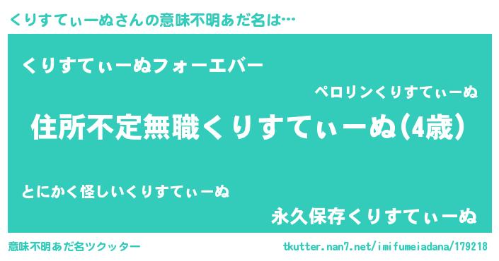 | ヘコむあだ名 | 『つくし』『くりすてぃーぬ(小並感)』 |