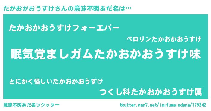 | 欧米人風あだ名 | 『ダニエルたかおかおうすけ』 |