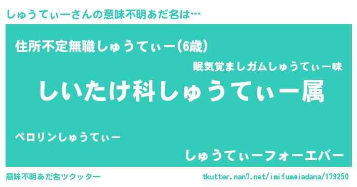 | 料理風あだ名 | 『しゅうてぃーごはん』 |