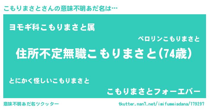 | 男性向けラノベタイトル風あだ名 | 『魔弾の王とこもりまさと』 |