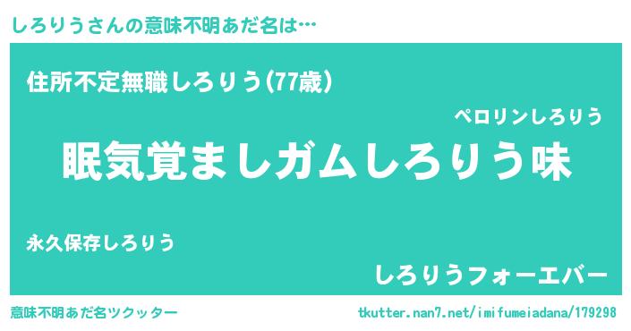 | 男性向けラノベタイトル風あだ名 | 『しろりうに滅ぼされるだけの簡単なお仕事です』 |