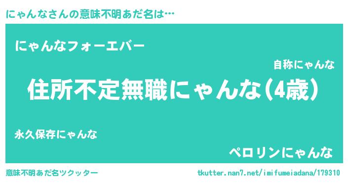 | 欧米人風あだ名 | 『にゃんな・ステッグマイヤー』 |