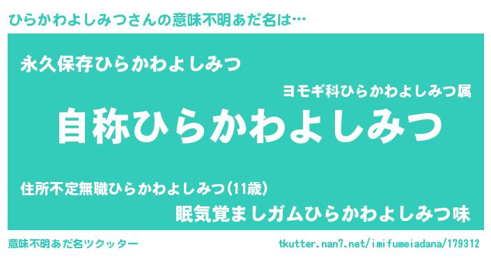 | 肩書あだ名 | 『ひらかわよしみつ閣下』 |