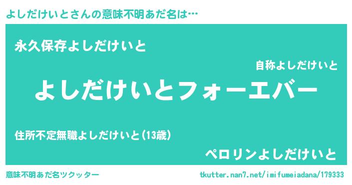| 欧米人風あだ名 | 『アンジェラ・よしだけいと』 |