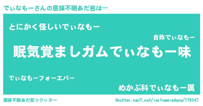 | ヒーロー風カッコイイあだ名 | 『天空の使者でぃなもー』『魔戒騎士ディ』 |
