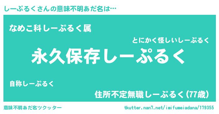 | 男性向けラノベタイトル風あだ名 | 『しーぷるくという概念が存在しない退屈な世界 』 |