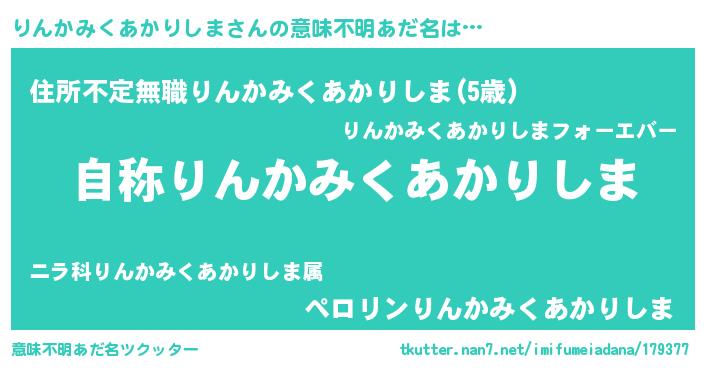 | 肩書あだ名 | 『りんかみくあかりしま総統』 |