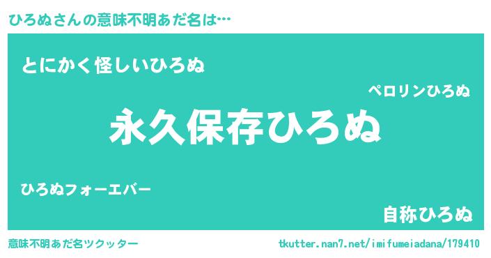 | 男性向けラノベタイトル風あだ名 | 『ひろぬという概念が存在しない退屈な世界 』 |