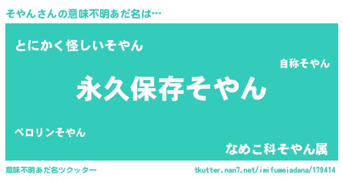 | ヘコむあだ名 | 『そやん(小並感)』『そやを』 |