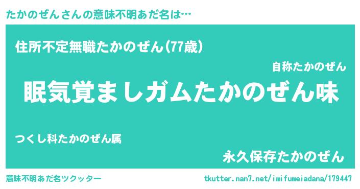 | ヘコむあだ名 | 『たかのぜん(笑)』『たかぷりん』 |
