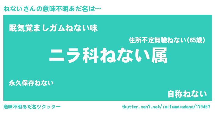 | ヘコむあだ名 | 『ねない(遠い目)』『ねなもー』 |