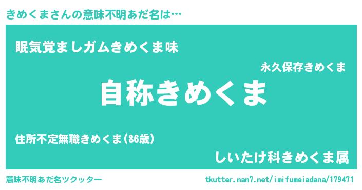 | 恥ずかしいあだ名 | 『キメクマデラックス』『きめちん』 |