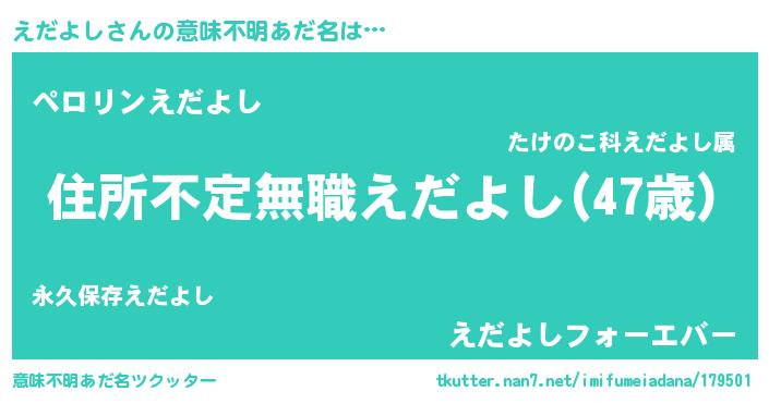 | 欧米人風あだ名 | 『アンジェラ・えだよし』 |