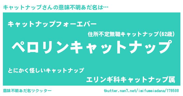 | 胡散臭い通販商品みたいなあだ名 | 『必ず成功する霊験あらたかなお札…その名も「キャットナップ」』 |