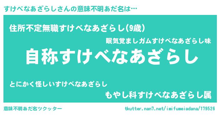 | 男性向けラノベタイトル風あだ名 | 『Re:すけべなあざらしから始める異世界生活』 |
