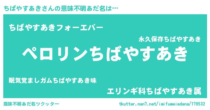 | 肩書あだ名 | 『ちばやすあきCEO』『ちばやすあき大佐』 |