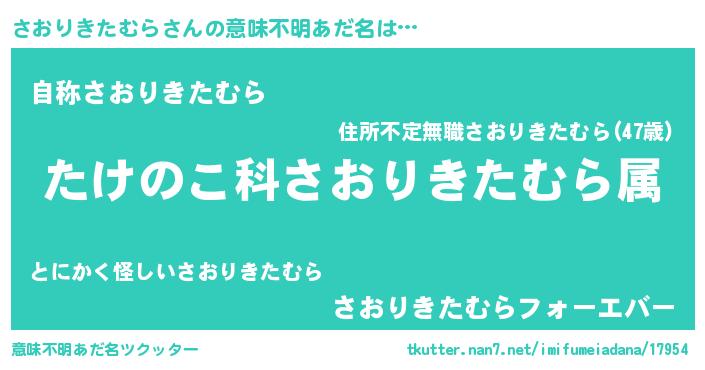 | 男性向けラノベタイトル風あだ名 | 『転生したらさおりきたむらだった件』 |
