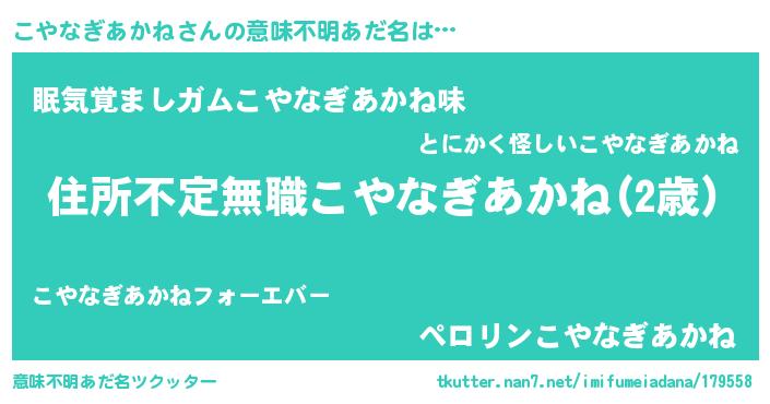 | 胡散臭い通販商品みたいなあだ名 | 『あなたにだけ特別に提供する100年もののヴィンテージワイン…その名も「こやなぎあかね」』 |