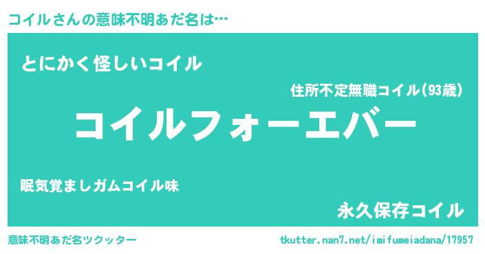 | 女子向けラノベタイトル風あだ名 | 『コイルの婚約者』 |