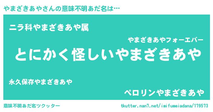 | ポケモン風あだ名 | 『ヒヤマザキアヤ』『ヤマキング』 |