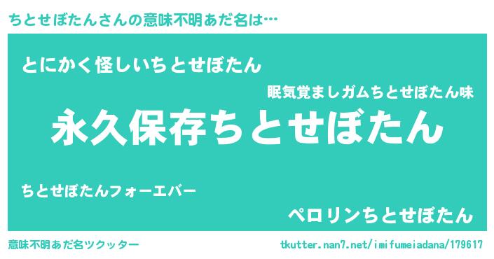 | ヘコむあだ名 | 『ちとせぼたん(笑)』『ちと太郎』 |