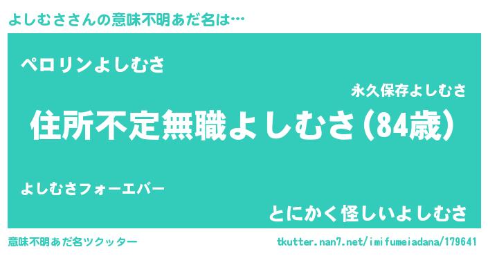 | ポケモン風あだ名 | 『ヨシゴンZ』『ヨーシイ』『ゼニヨシ』 |