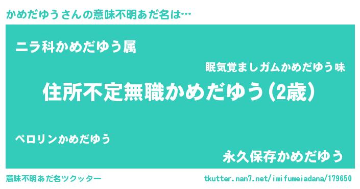 | ヘコむあだ名 | 『かめだゆう(小並感)』『かめにー』 |