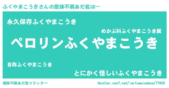 | ヘコむあだ名 | 『ふくもー』『ふくやまこうき(笑)』 |