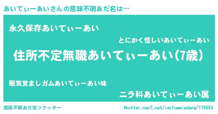 | ヘコむあだ名 | 『あいてぃーあい(笑)』『あいっ子』 |