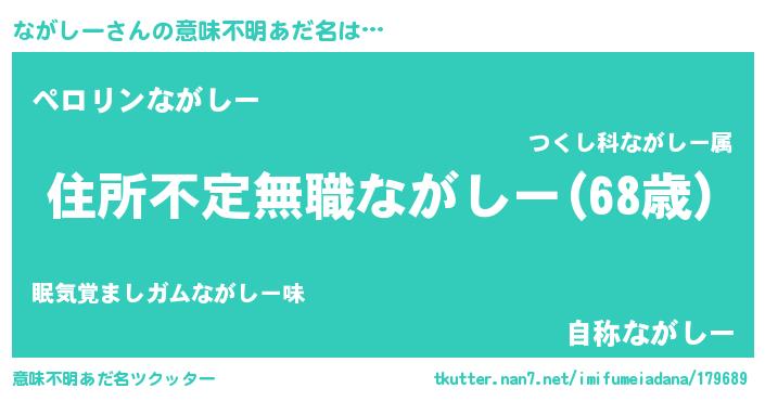 | 男性向けラノベタイトル風あだ名 | 『ながしーに滅ぼされるだけの簡単なお仕事です』 |