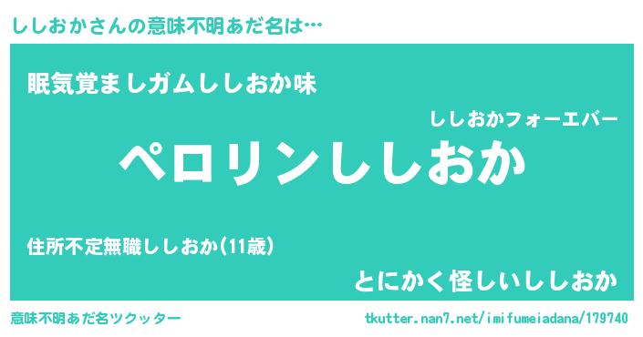 | 恥ずかしいあだ名 | 『プリティーししおか』『シシリンリン』 |