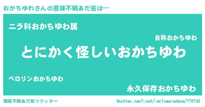 | 男性向けラノベタイトル風あだ名 | 『ダンジョンにおかちゆわを求めるのは間違っているだろうか』 |