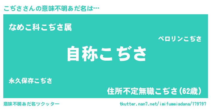 | 女子向けラノベタイトル風あだ名 | 『闇のこぢさ』『こぢさ姫と円卓の騎士』 |